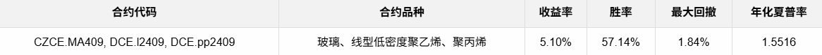 - 交易品种: CZCE.MA409, DCE.l2409, DCE.pp2409