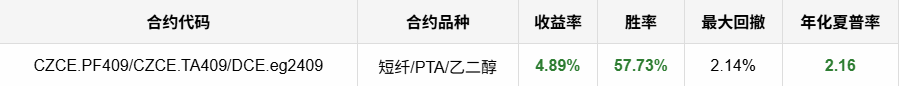 - 交易品种: CZCE.PF409/CZCE.TA409/DCE.eg2409