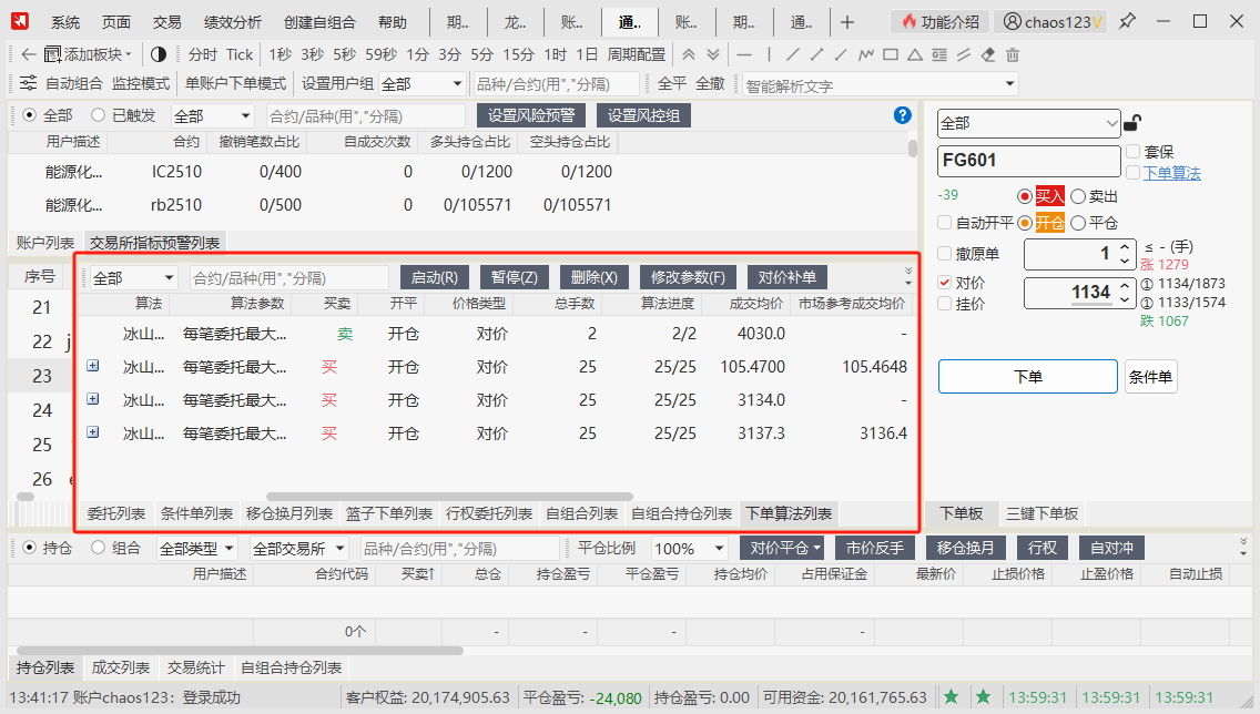 - 支持自定义套利组合、移仓换月、算法下单、条件单等实用工具
